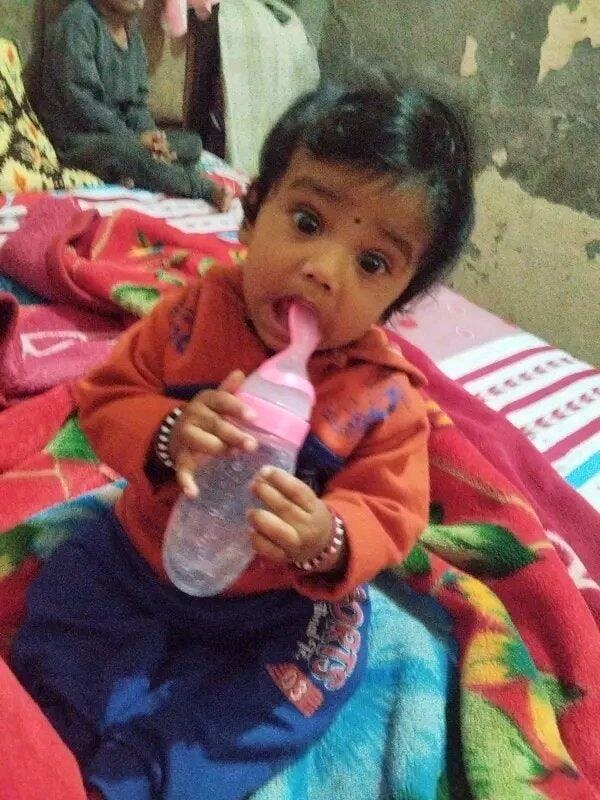 Baby happily feed le raha hai, The Kart Ivo best store.
